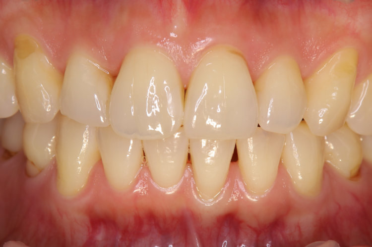 数年前に初診でご来院いただき、歯列不正があったため矯正治療をお勧めしました。 矯正治療が終了したので審美的な改善をご希望でご来院になりました。