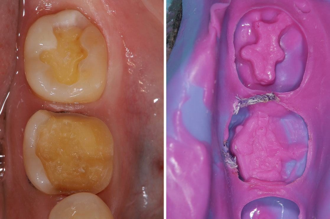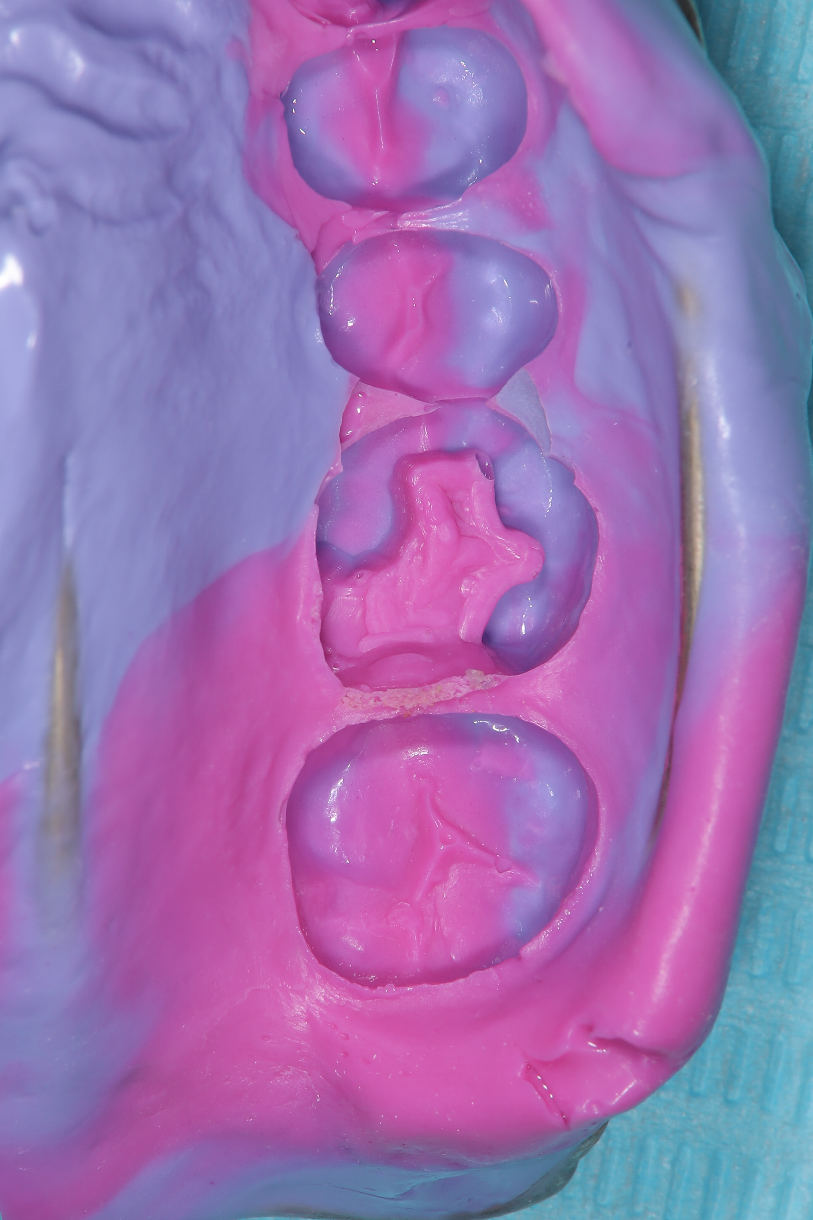 後日、右上6番セラミックインレー・右上7番セラミッククラウンの印象を行いました。