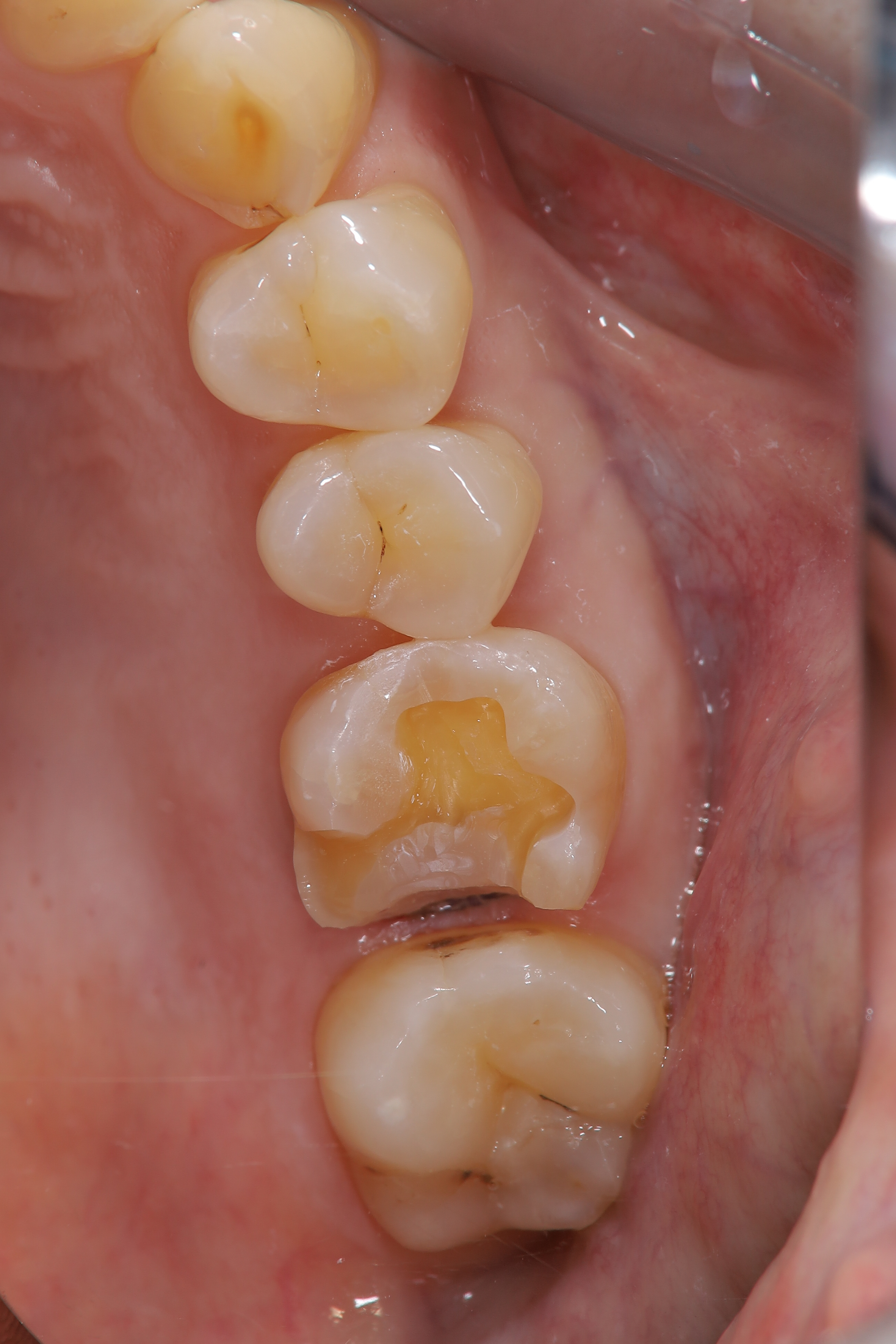 左下6番にはCRインレーが入っており、かなり不適でフロスが通らない状態です。
